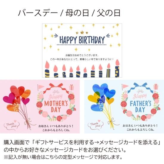 ご希望の方は購入画面で「ギフトサービスを利用する→メッセージカードを添える」の中から選んでメッセージをご記入ください。