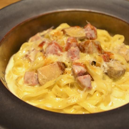 原材料:デュラム小麦粉(国内製造)、小麦粉、卵、ブラックペッパー、食塩/酒精、加工澱粉、(一部に小麦・卵を含む)